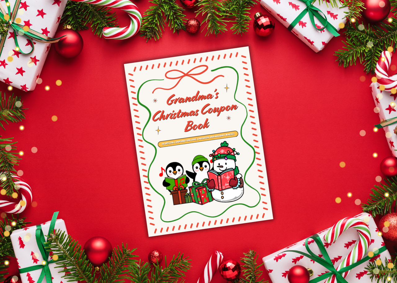 Grandma's Christmas Coupon Book is an adorable printable holiday keepsake filled with beautifully illustrated coupons your grandkids can redeem for hugs, treats, stories, sleepovers, and special moments together.