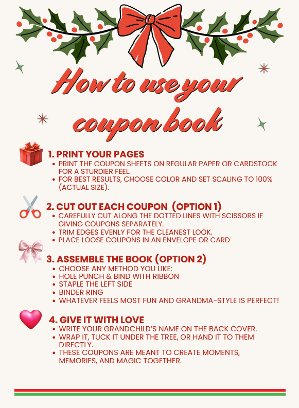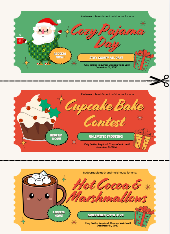 Each coupon features a unique activity designed to spark joy, encourage togetherness, and make Christmas extra special.